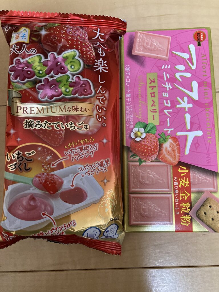 いちご味×いちご味のコラボなんだかおいしそうと思って合わせてみました!